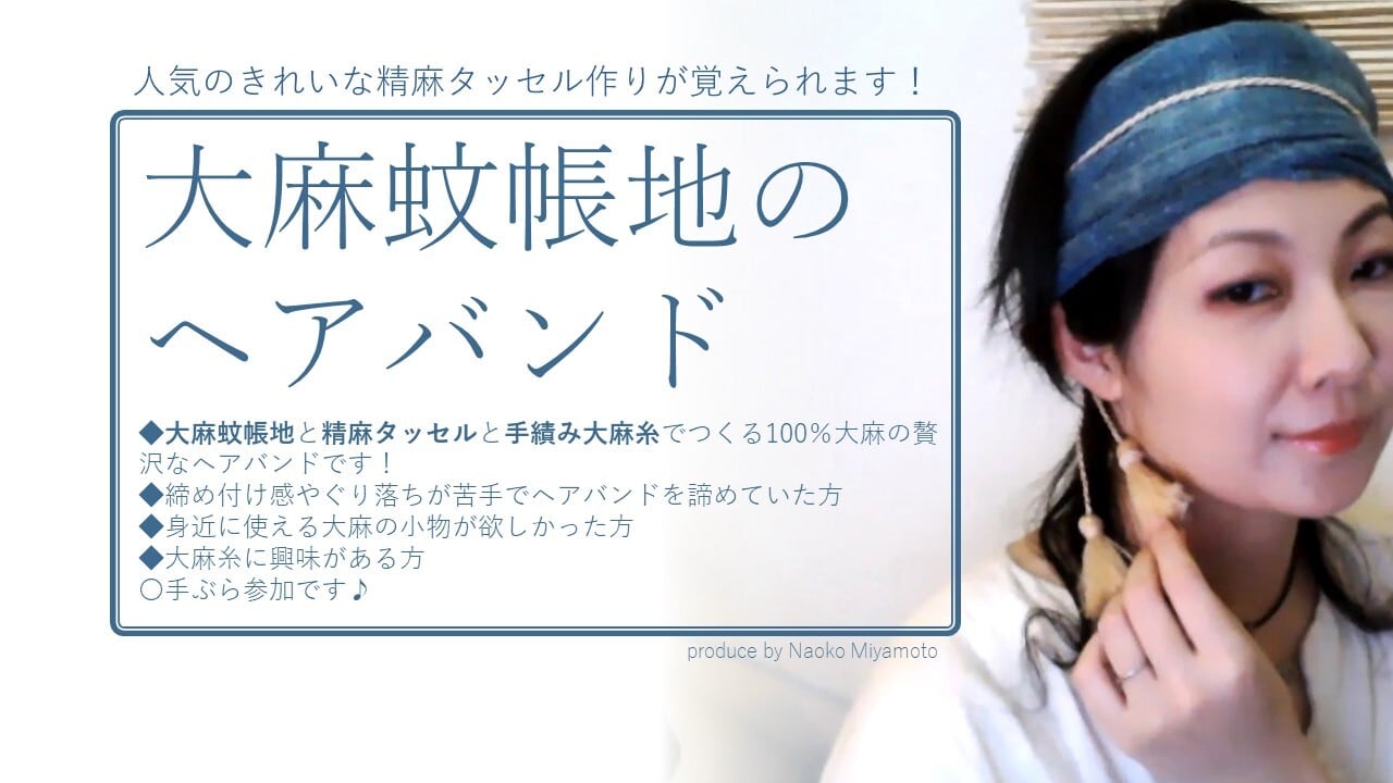 【100%完全大麻のヘアバンドを作りませんか♪】※初級修了生限定